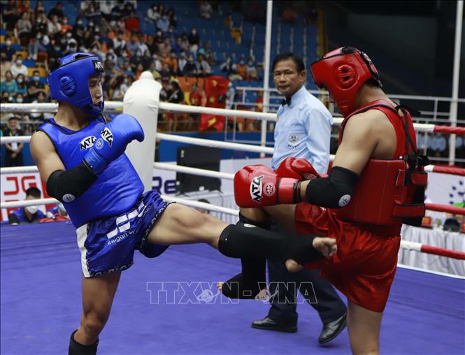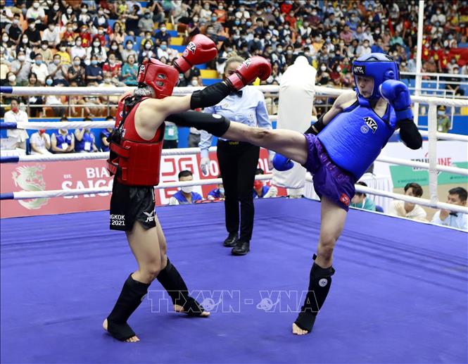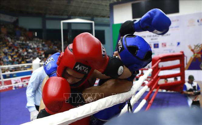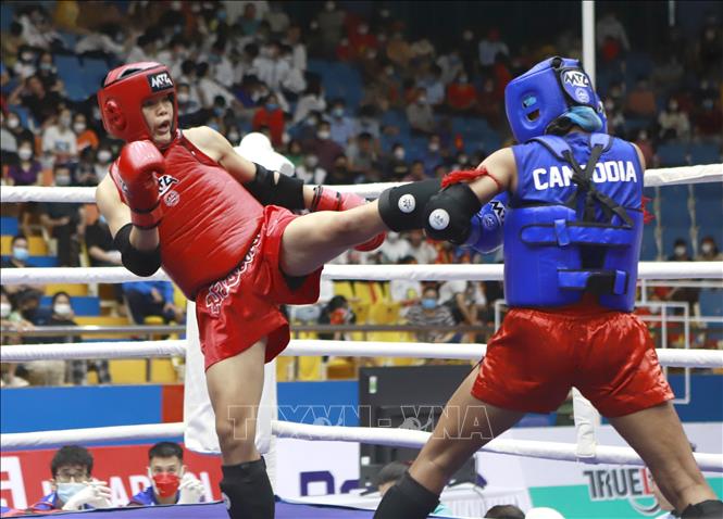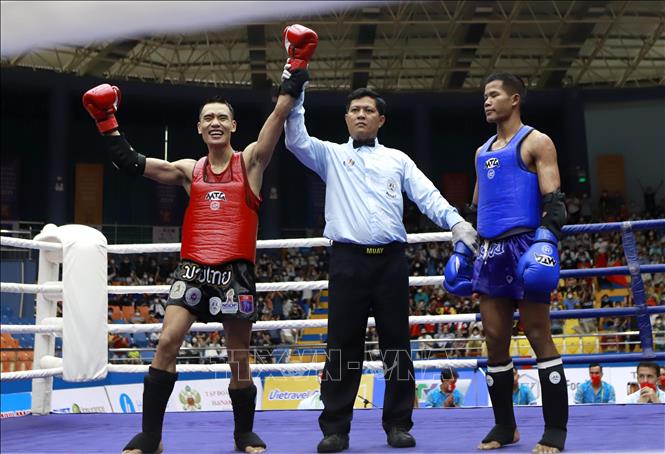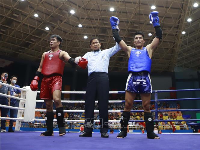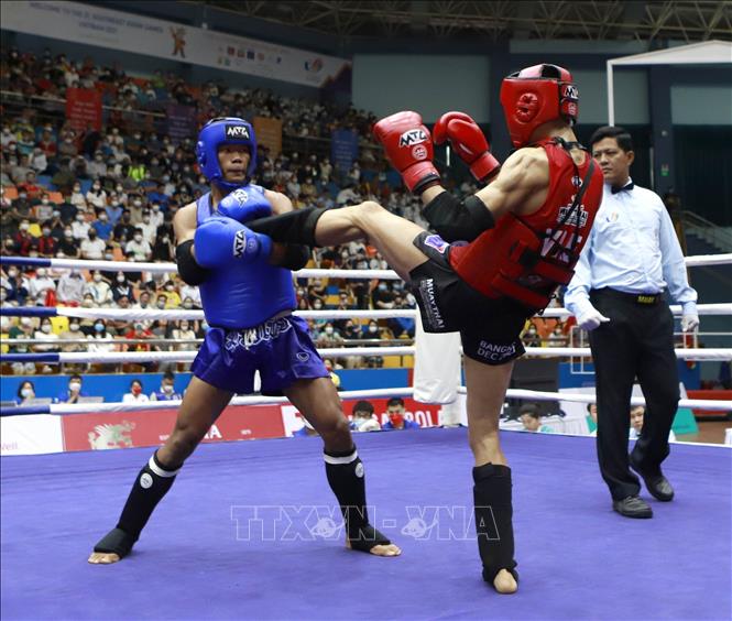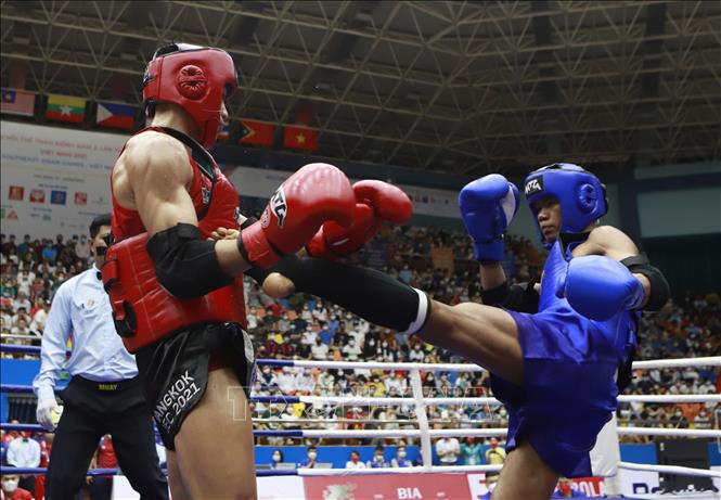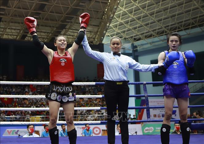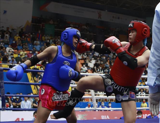 Ngày 21/5/2022, tại Nhà thi đấu tỉnh Vĩnh Phúc diễn ra các nội dung thi đấu đối kháng vòng bán kết môn Muay ở SEA Games 31. Cả 4 VĐV Việt Nam gồm: Huỳnh Hà Hữu Hiếu (hạng 48 kg nữ), Bàng Thị Mai (hạng 60 kg nữ), Nguyễn Đoàn Long (hạng 57 kg nam), Trương Cao Minh Phát (hạng 63,5 kg nam) đều xuất sắc vượt qua các đối thủ nặng ký để giành quyền thi đấu trận chung kết vào ngày 22/5. Ảnh: Hoàng Hùng - TTXVN