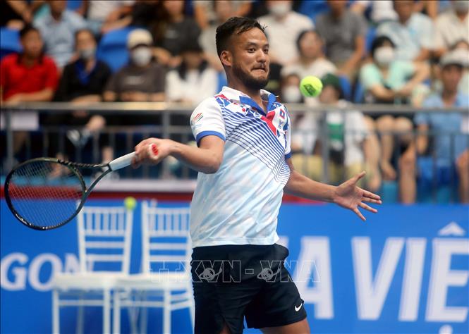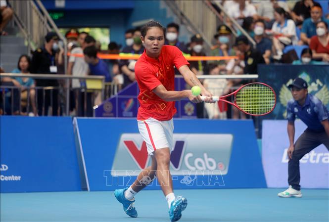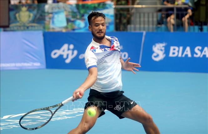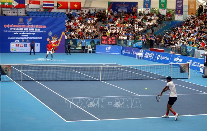 Ngày 21/5/2022, tại Nhà thi đấu Hanaka Từ Sơn (Bắc Ninh), tay vợt Trịnh Linh Giang (Việt Nam) thắng tay vợt Mick Lescure Sadettan (Lào) với tỷ số 2-0 ở trận bán kết đơn nam môn Quần vợt ở SEA Games 31. Ảnh: Thế Duyệt – TTXVN