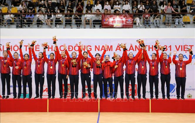 Tối 21/5/2022, tại Trường Đại học Thể dục Thể thao Bắc Ninh diễn ra Lễ trao huy chương cho các đội tham dự môn bóng ném trong nhà ở SEA Games 31. Kết thúc môn, 2 đội tuyển bóng ném nam và nữ Việt Nam đều giành HCV; Đội tuyển bóng ném nam và nữ Thái Lan giành 2 HCB. Ảnh: Thế Duyệt – TTXVN