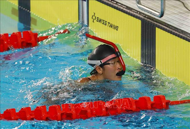 Ngày 21/5/2022, tại Cung thể thao dưới nước (Hà Nội), VĐV Cao Thị Duyên (Việt Nam) giành HCV và phá kỷ lục SEA Games nội dung 100m lặn vòi hơi chân vịt đôi nữ với thành tích 49 giây 04. Ảnh: Phạm Kiên - TTXVN