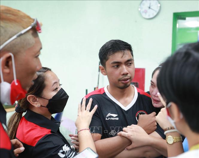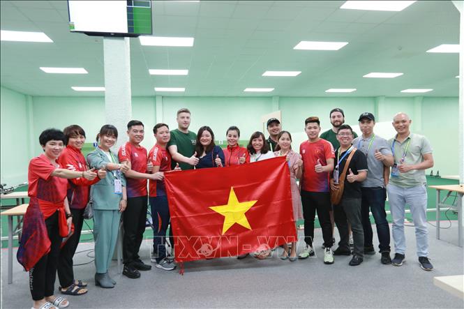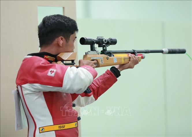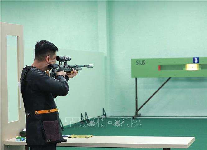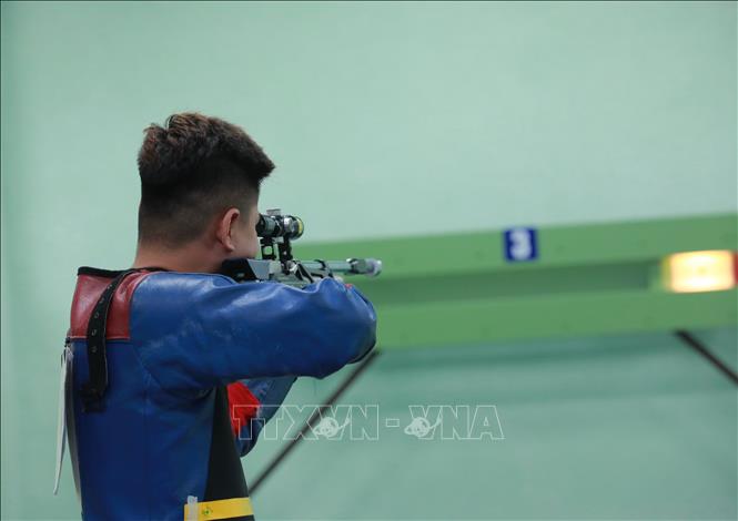 Sáng 20/5/2022, tại Trung tâm Huấn luyện thể thao Quốc gia Hà Nội, môn Bắn súng tại SEA Games 31 thi đấu chung kết nội dung 10m súng trường di động tiêu chuẩn nam. Sau 30 loạt chậm và 30 loạt nhanh, về đồng đội: Đội Việt Nam gồm Ngô Hữu Vương, Trần Hoàng Vũ, Nguyễn Tuấn Anh giành HCV, đội Indonesia - HCB, đội Lào - HCĐ; Cá nhân: VĐV Putra Muhammad Sejahtera Dwi (Indonesia) với số điểm 569-19x giành HCV, Ngô Hữu Vương với 566-11x giành HCB, Trần Hoàng Vũ - HCĐ. Ảnh: Hoàng Hiếu - TTXVN