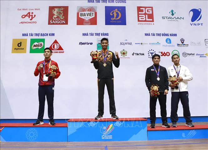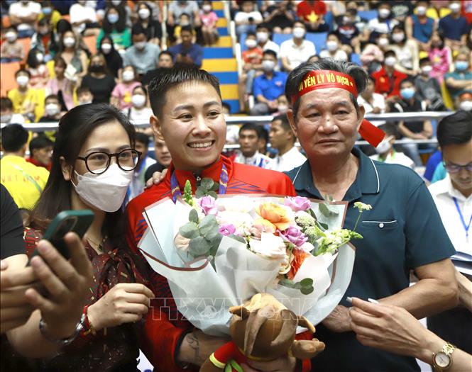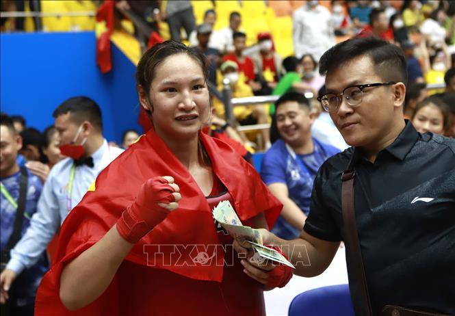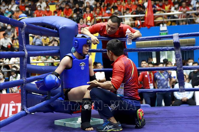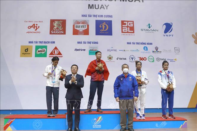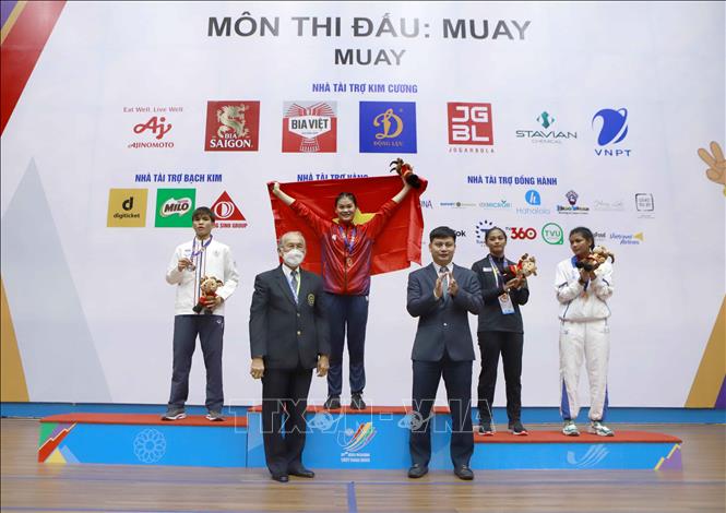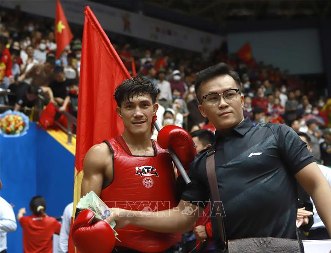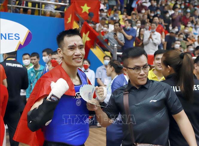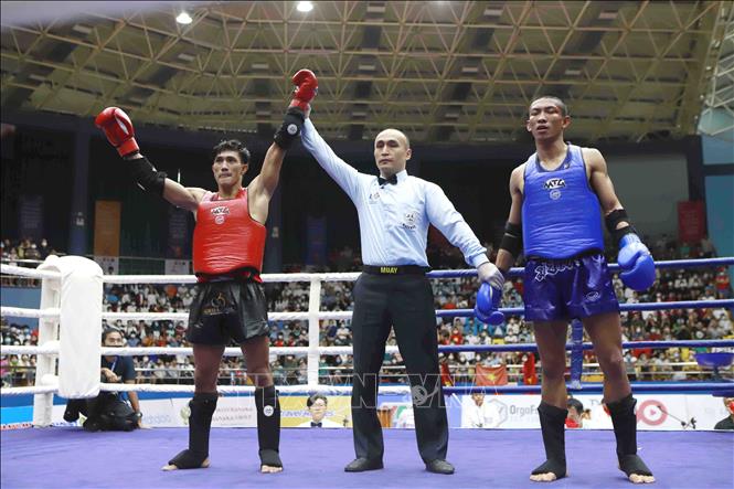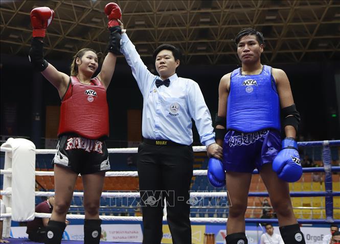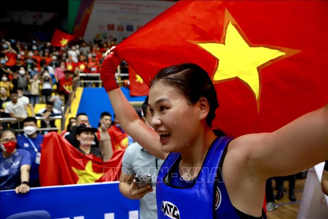 Ngày 22/5/2022, tại Nhà thi đấu tỉnh Vĩnh Phúc diễn ra 9 nội dung thi đấu chung kết đối kháng nam, nữ của môn Muay ở SEA Games 31. Các VĐV Việt Nam đã giành liên tiếp 4 tấm HCV, gồm: Bùi Yến Ly (hạng cân 54 kg nữ); Nguyễn Trần Duy Nhất (60 kg nam); Bàng Thị Mai (60kg nữ); Nguyễn Thị Phương Hậu (63,5 kg nữ). Ảnh: Hoàng Hùng - TTXVN