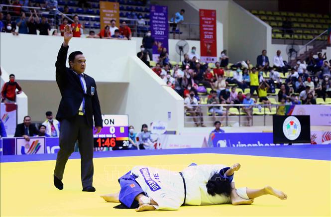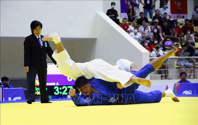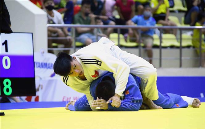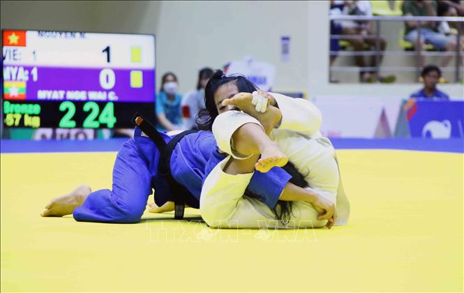 Chiều 22/5/2022, tại Nhà thi đấu Hoài Đức (Hà Nội) diễn ra ngày thi đấu thứ 5 môn Judo tại SEA Games 31 với nội dung đồng đội. Đội tuyển Judo Việt Nam thi đấu với đội tuyển Myanmar và giành chiến thắng để đoạt HCĐ, đội tuyển Thái Lan giành HCV, đội tuyển Indonesia giành HCB, đồng HCĐ thuộc về đội tuyển Malaysia Ảnh: Quang Quyết-TTXVN