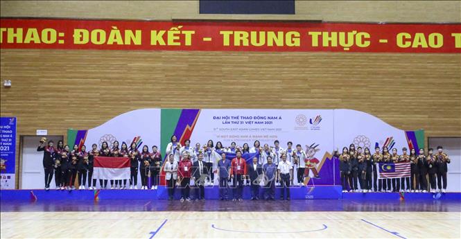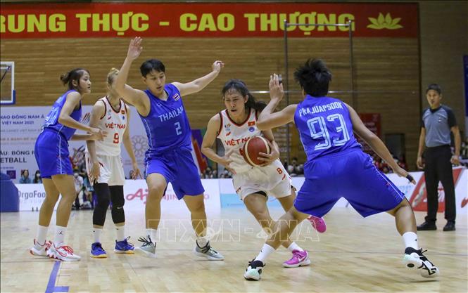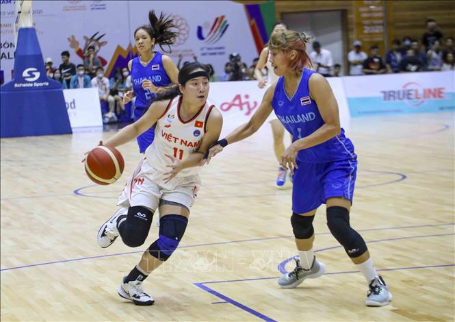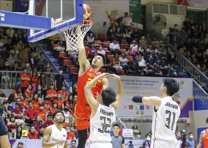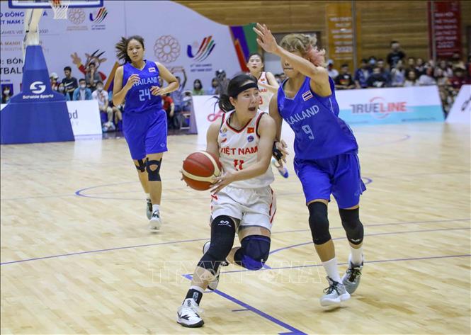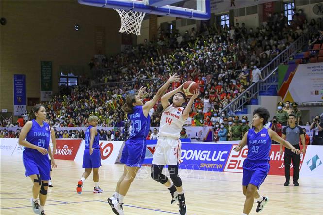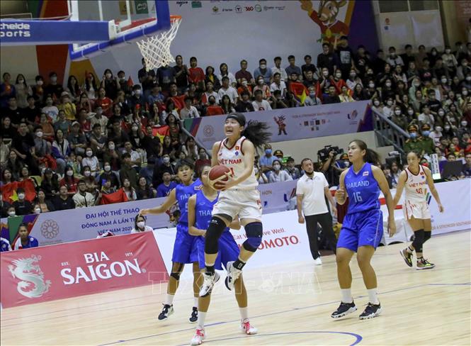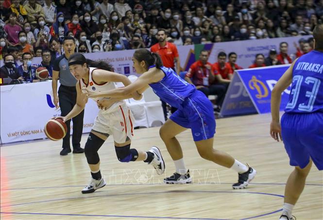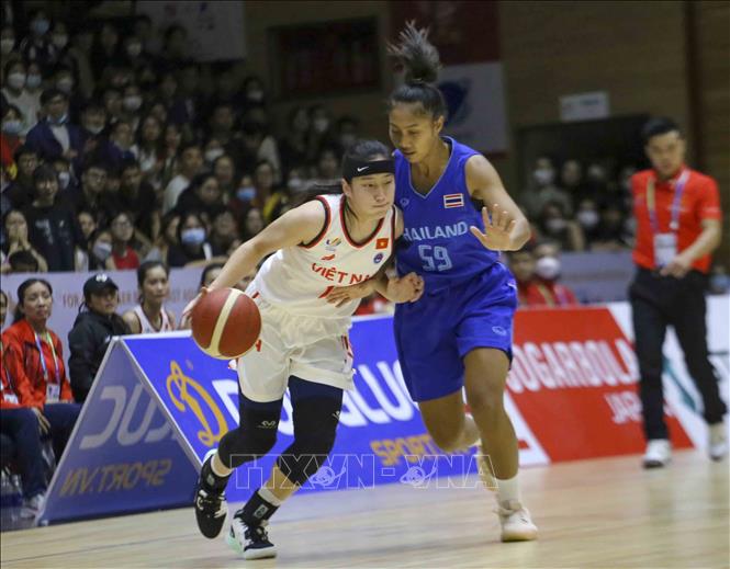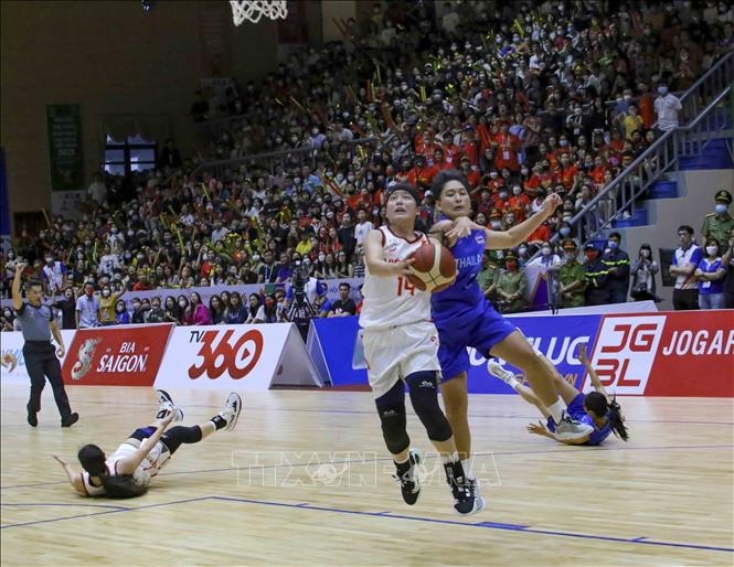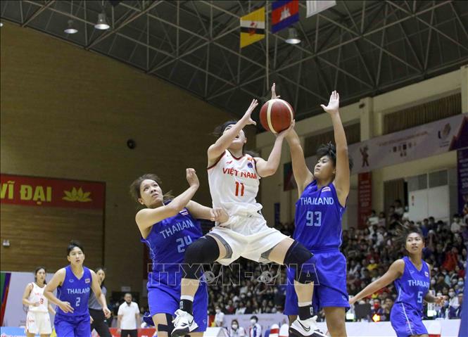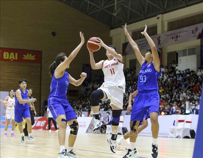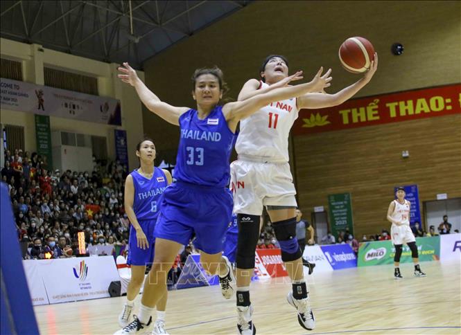 Ngày 22/5/2022, tại Nhà thi đấu Thanh Trì (Hà Nội), đội tuyển bóng rổ nam và nữ Việt Nam có trận đấu cuối cùng trước đội tuyển bóng rổ nam và nữ Thái Lan. Ảnh: Tuấn Đức - TTXVN