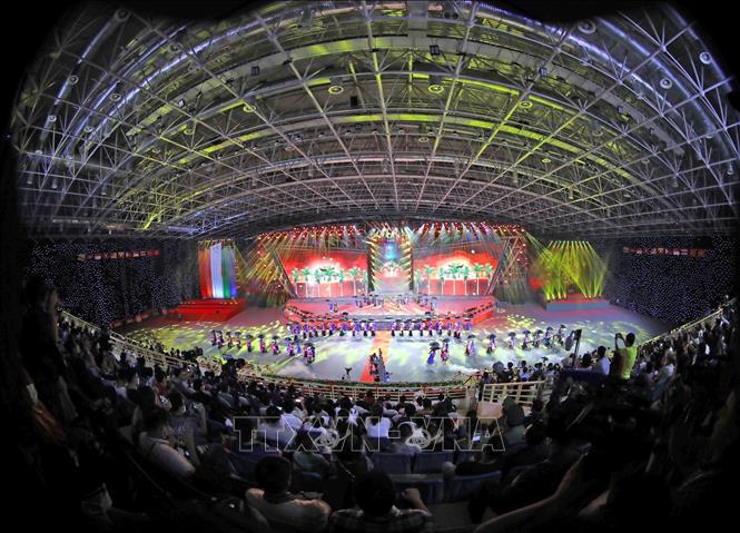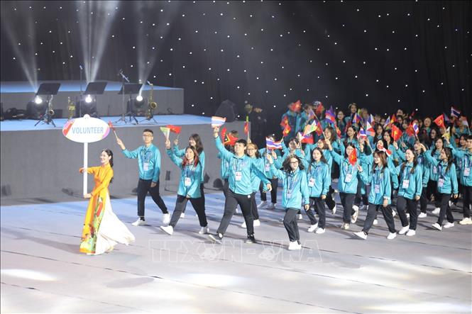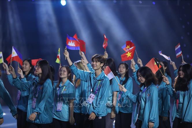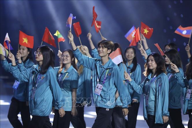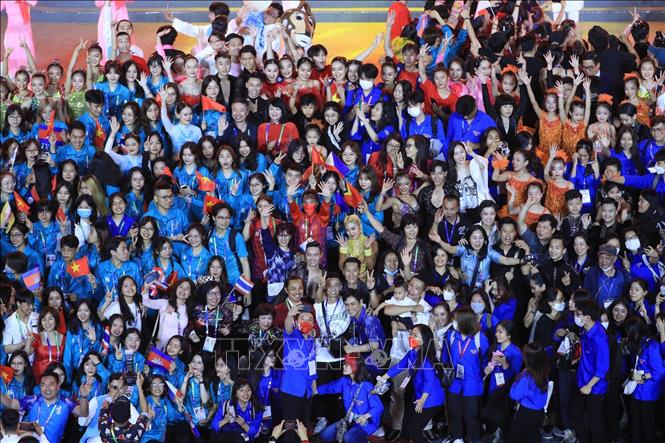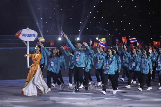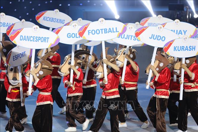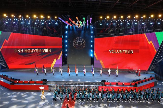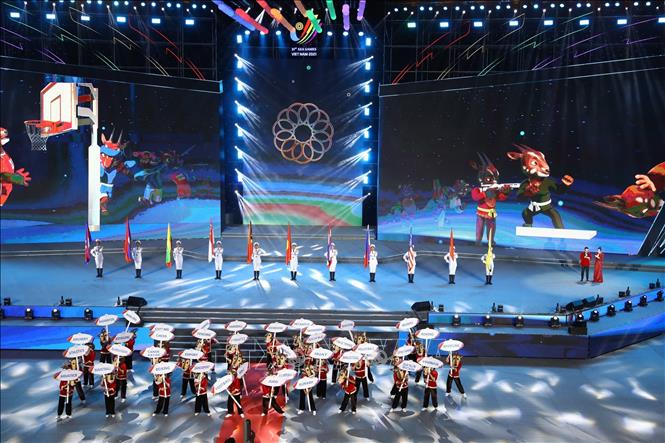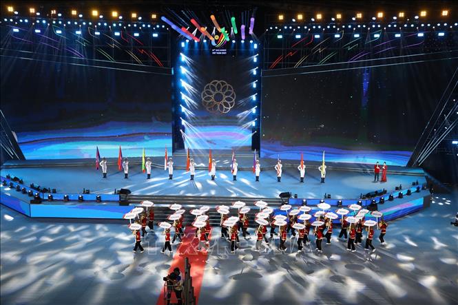 Tối 23/5/2022, Lễ bế mạc Đại hội Thể thao Đông Nam Á lần thứ 31 – năm 2021 (SEA Games 31) được tổ chức trang trọng tại Cung điền kinh trong nhà Hà Nội. Với chương trình nghệ thuật mang chủ đề "Hội tụ để tỏa sáng”, nước chủ nhà Việt Nam gửi lời chào nồng ấm tới bạn bè khu vực và thông điệp về sự đoàn kết, gắn bó mà các nước Đông Nam Á mang tới kỳ SEA Games này. Ảnh: TTXVN