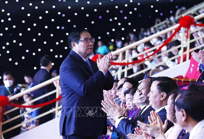 Tối 23/5/2022, Thủ tướng Phạm Minh Chính dự Lễ bế mạc SEA Games 31, được tổ chức tại Cung điền kinh trong nhà Hà Nội. Ảnh: Dương Giang-TTXVN