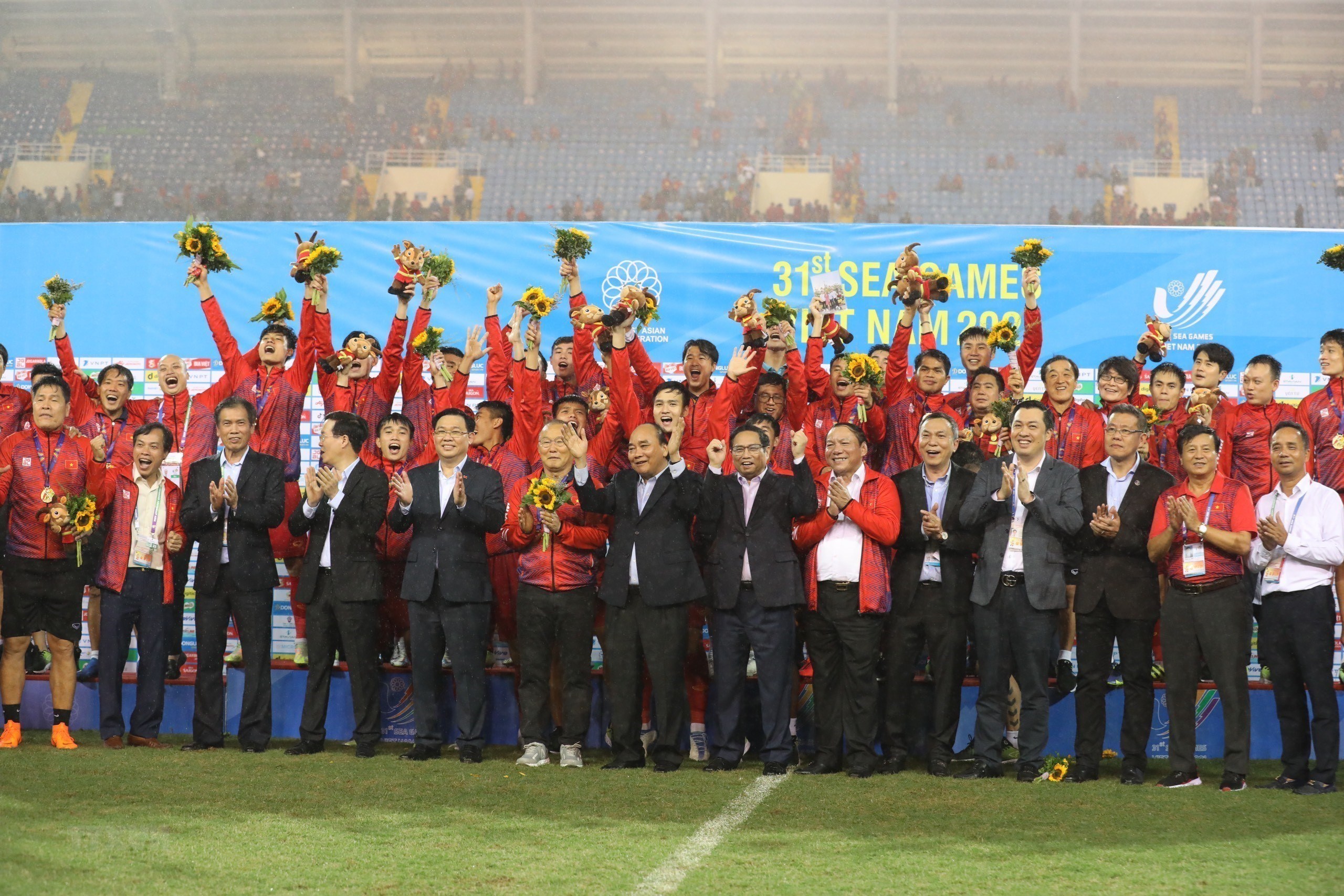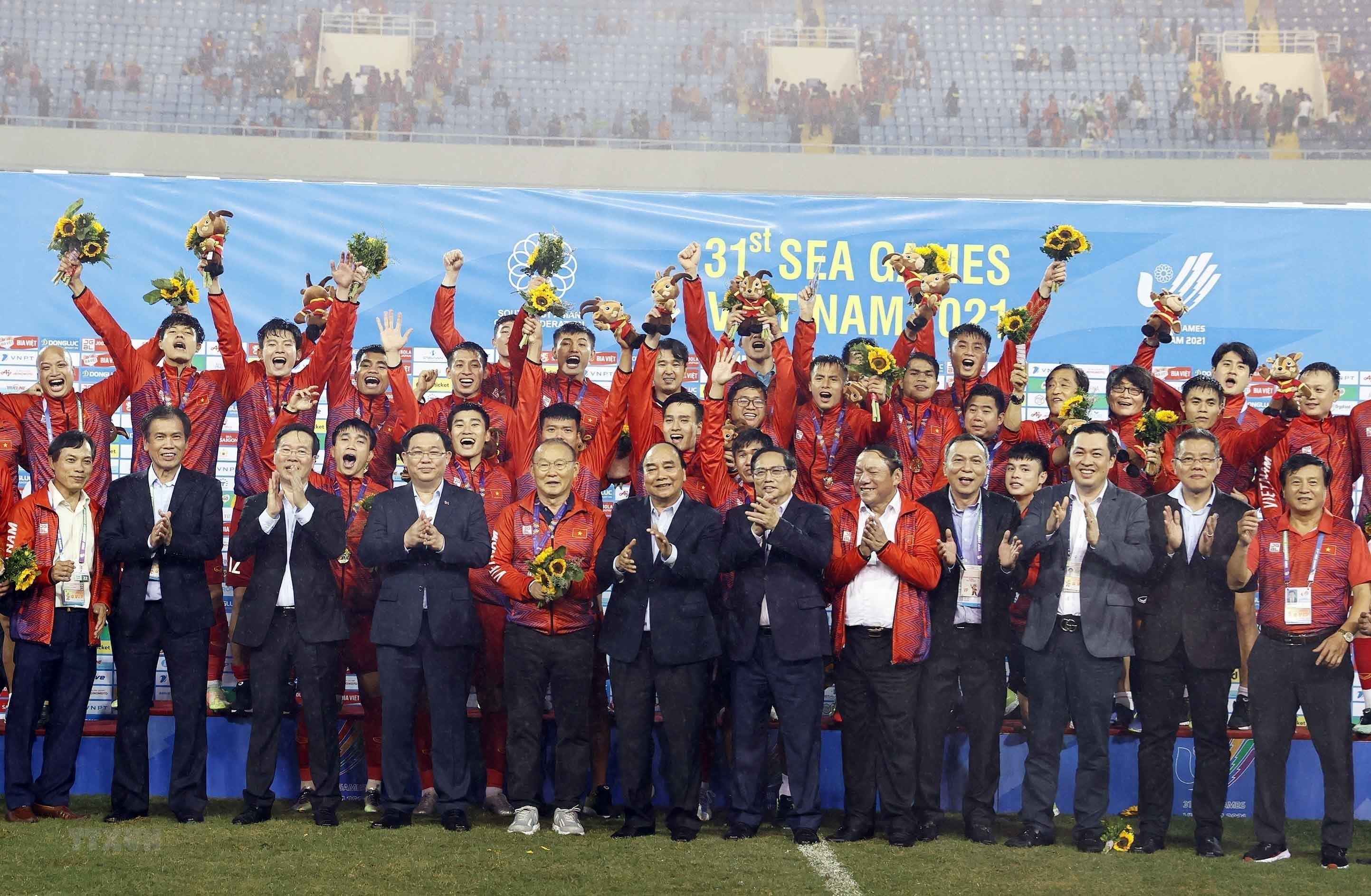 Chủ tịch nước Nguyễn Xuân Phúc, Thủ tướng Phạm Minh Chính, Chủ tịch Quốc hội Vương Đình Huệ, Thường trực Ban Bí thư Võ Văn Thưởng... tới dự khán trận chung kết môn bóng đá nam ở SEA Games 31.