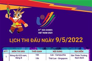 SEA Games 31: Lịch thi đấu ngày 9/5/2022