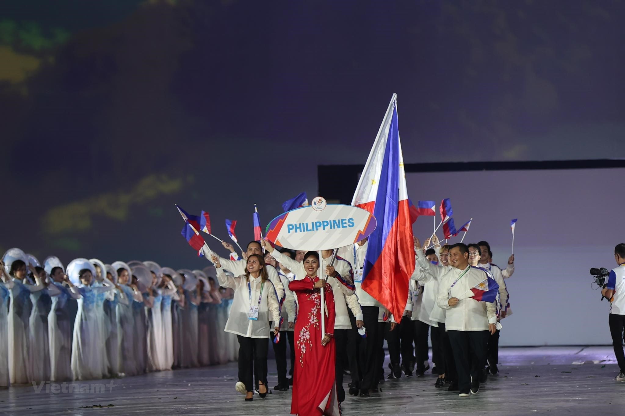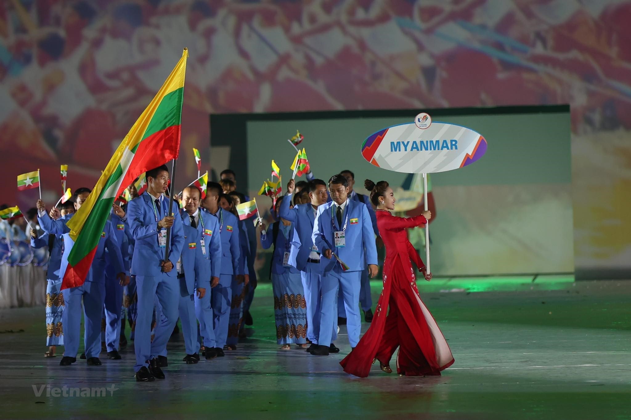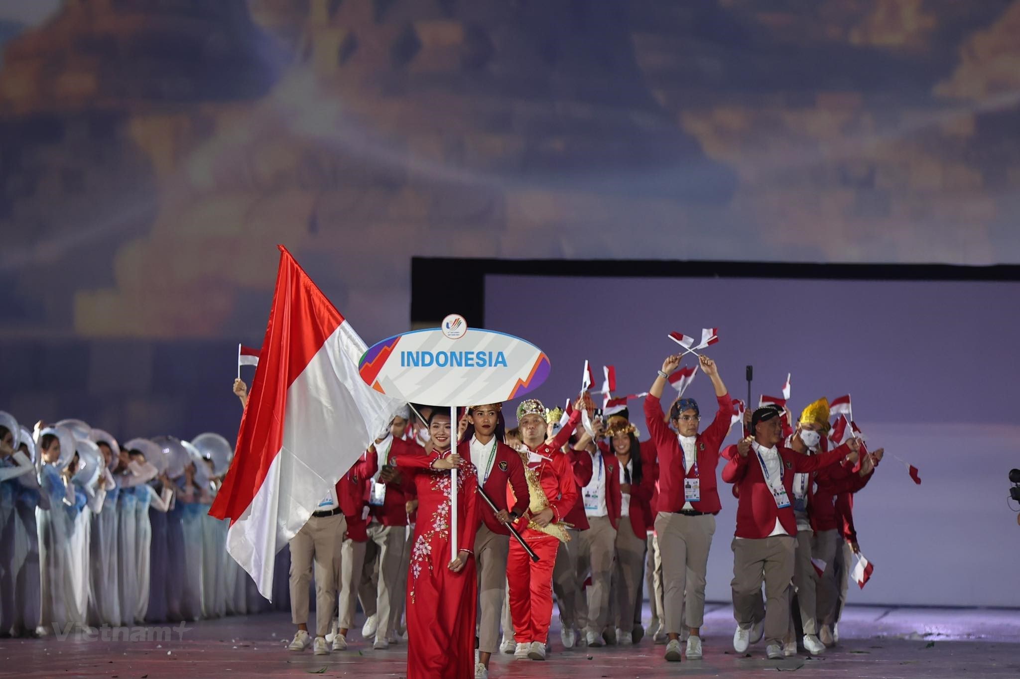 Sau Lễ Thượng cờ và màn trình diễn nghệ thuật ở Lê khai mạc SEA Games 31 là phần diễu hành của 11 đoàn thể thao tham dự Đại hội Thể thao Đông Nam Á lần thứ 31.