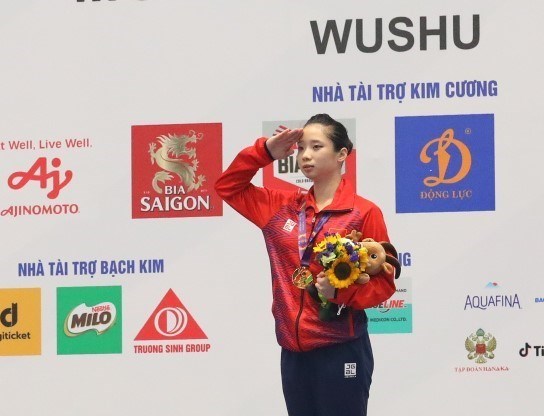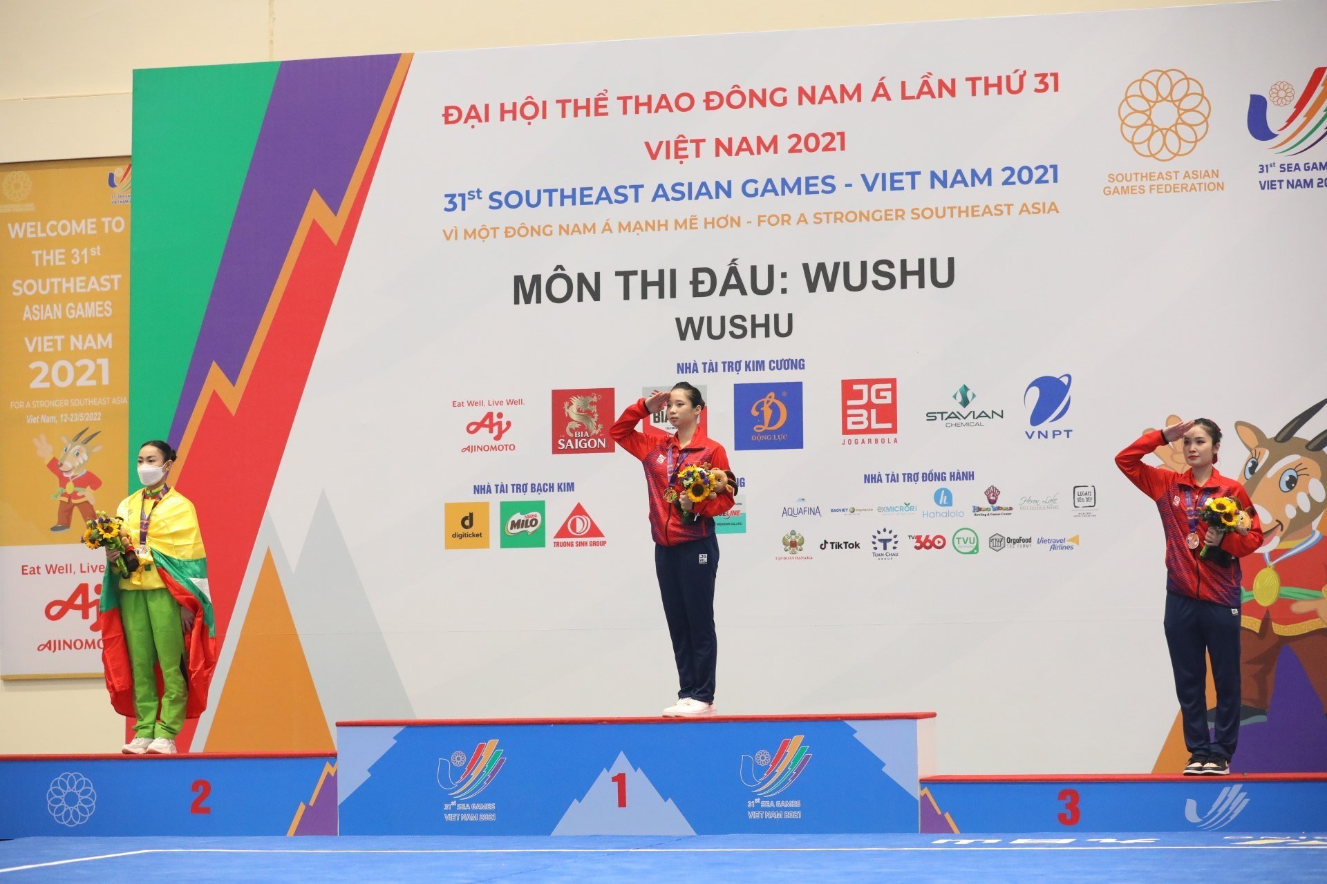 VĐV Dương Thúy Vi được 9,70 điểm với bài thi Thương thuật nữ và giành huy chương Vàng trong ngày 14/5/2022 – ngày thi đấu thứ hai của môn Wushu. Đây là tấm HCV thứ hai của Thúy Vi tại SEA Games 31.