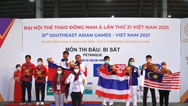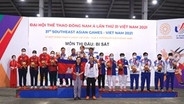 Bi sắt Điền kinh Vovinam Hai môn và Ba môn phối hợp Jujitsu Kurash Kickboxing Lặn Thể thao điện tử Bowling Thể hình Wushu Vật Cử tạ Bóng chuyền Quần vợt Taekwondo Bóng bàn Bắn súng Cầu mây Đua thuyền Pencak Silat Muay Karate Judo Bóng ném Thể dục Golf Đấu kiếm Khiêu vũ thể thao Xe đạp Cờ Boxing Billiard Snooker Bóng rổ Cầu lông Bắn cung Nhảy cầu Bơi Bóng đá Bi sắt Việt Nam ‘chốt sổ’ bằng 1 huy chương bạc nội dung đồng đội nữ Thứ Năm, 19/05/2022 20:14 Bi sắt Việt Nam giành 1 vé vào vòng chung kết ở nội dung thi cuối cùng Thứ Tư, 18/05/2022 18:59 Cách chơi bi sắt - môn thể thao “học trò nghèo" vượt khó ở VN Thứ Tư, 18/05/2022 17:01 Bi sắt Campuchia giành huy chương vàng đầu tiên tại SEA Games 31 Thứ Ba, 17/05/2022 18:38 Bi sắt Việt Nam giành 2 vé vào bán kết ở nội dung đồng đội nam, nữ Thứ Hai, 16/05/2022 19:19 Hình ảnh cặp đôi tuyển nữ mang vàng đầu tiên về cho bi sắt Việt Nam Chủ Nhật, 15/05/2022 20:11 Cặp đôi tân binh mang “vàng” đầu tiên về cho bi sắt Việt Nam Chủ Nhật, 15/05/2022 18:25 Hình ảnh ngày thi đấu thứ hai của bộ môn bi sắt tại SEA Games 31 Thứ Bảy, 14/05/2022 20:01 SEA Games ngày 14/5: Đôi nam, nữ bi sắt Việt Nam cùng lọt vào bán kết Thứ Bảy, 14/05/2022 19:37 SEA Games 31: Các vận động viên bi sắt chính thức bước vào tranh tài Thứ Sáu, 13/05/2022 09:24 Tuyển bi sắt Việt Nam miệt mài tập luyện trước ngày thi đấu đầu tiên Thứ Năm, 12/05/2022 13:00 SEA Games 31: Đội tuyển bi sắt Việt Nam sẵn sàng 'xung trận' Thứ Năm, 12/05/2022 10:44 [Mega Story] Đội tuyển bi sắt Việt Nam: Con nhà nghèo vượt khó Thứ Tư, 20/04/2022 14:08 Hà Nội: Sẵn sàng cơ sở vật chất, trang thiết bị phục vụ SEA Games 31 Thứ Ba, 12/04/2022 09:54
