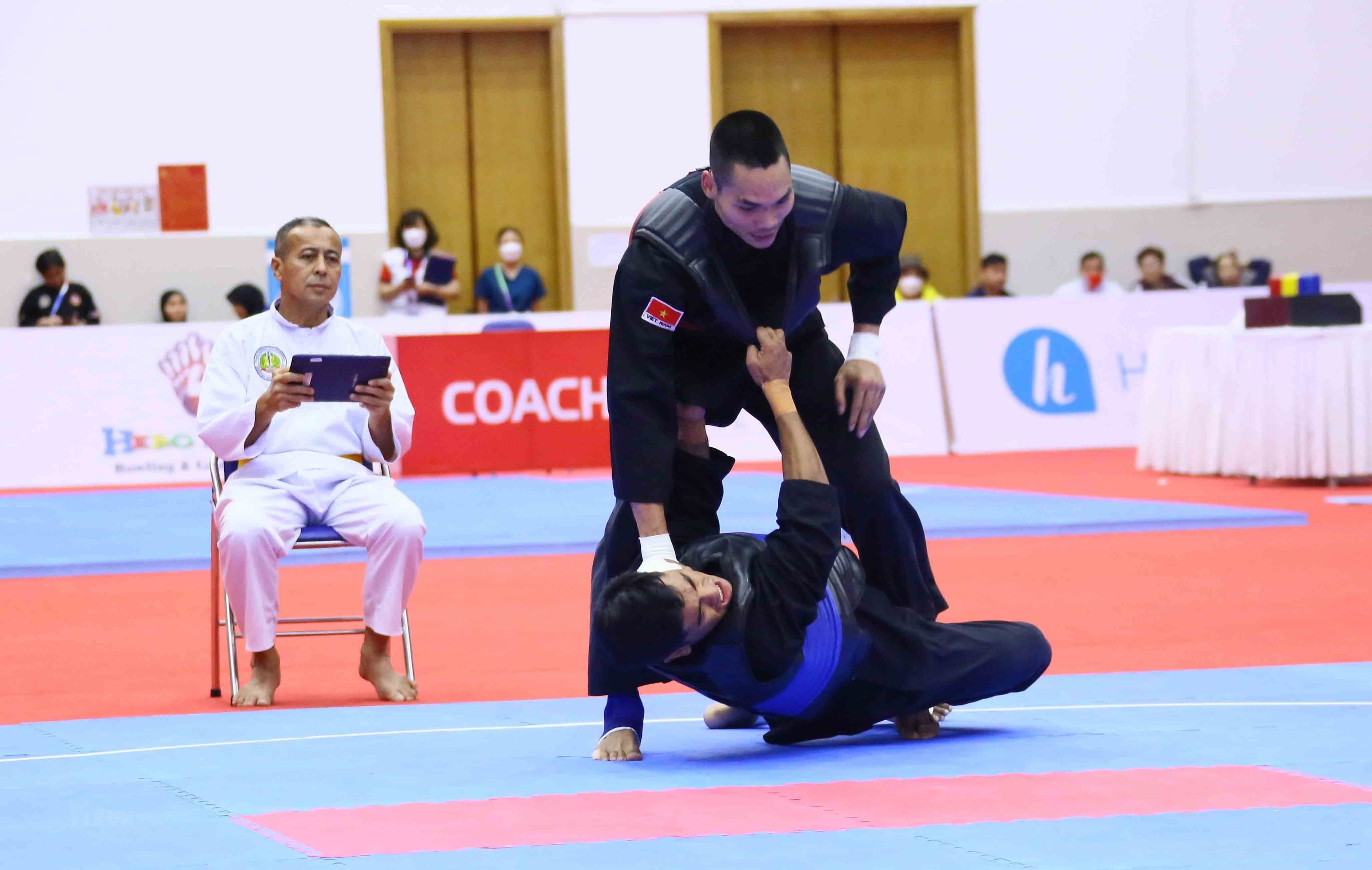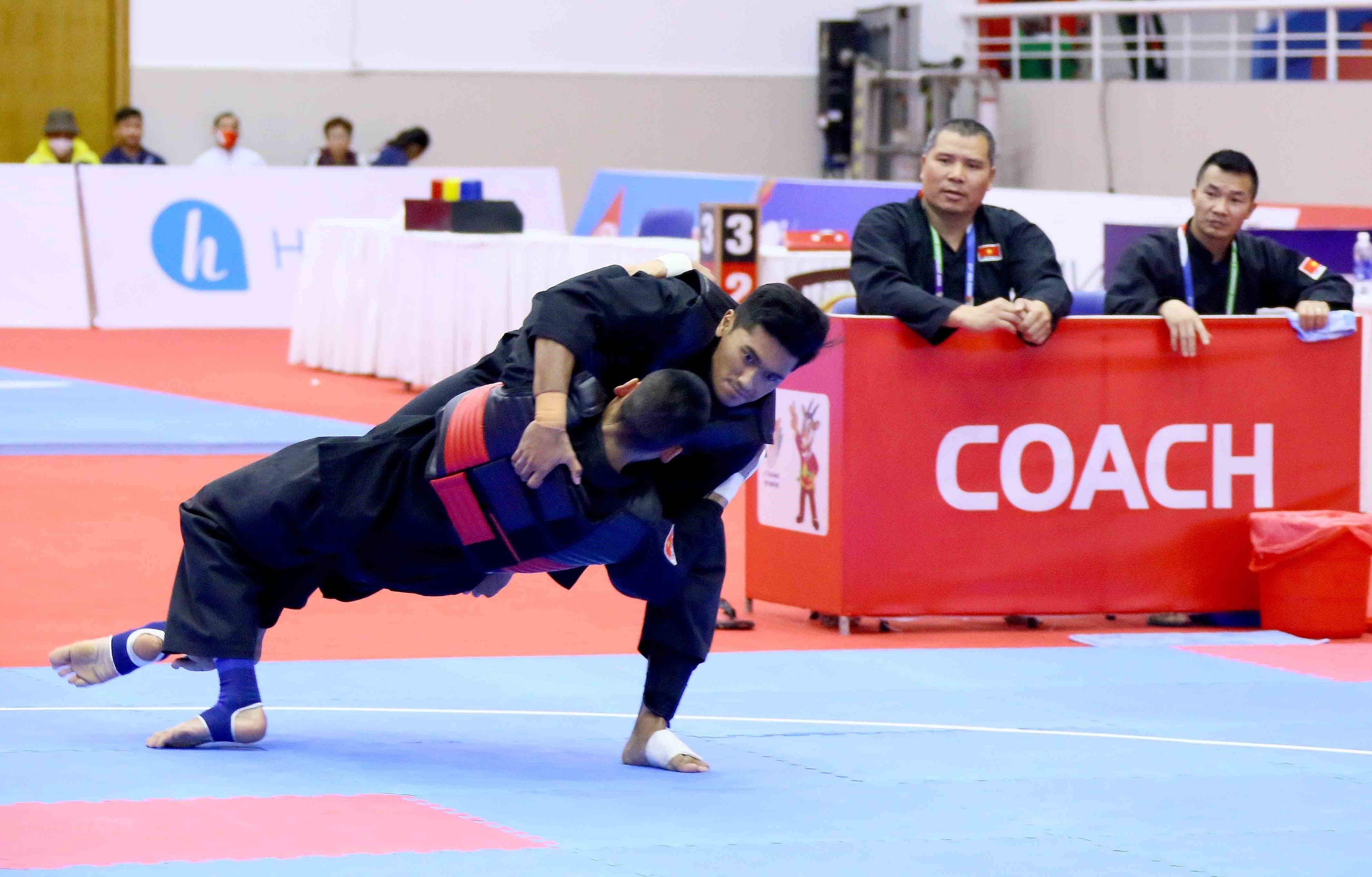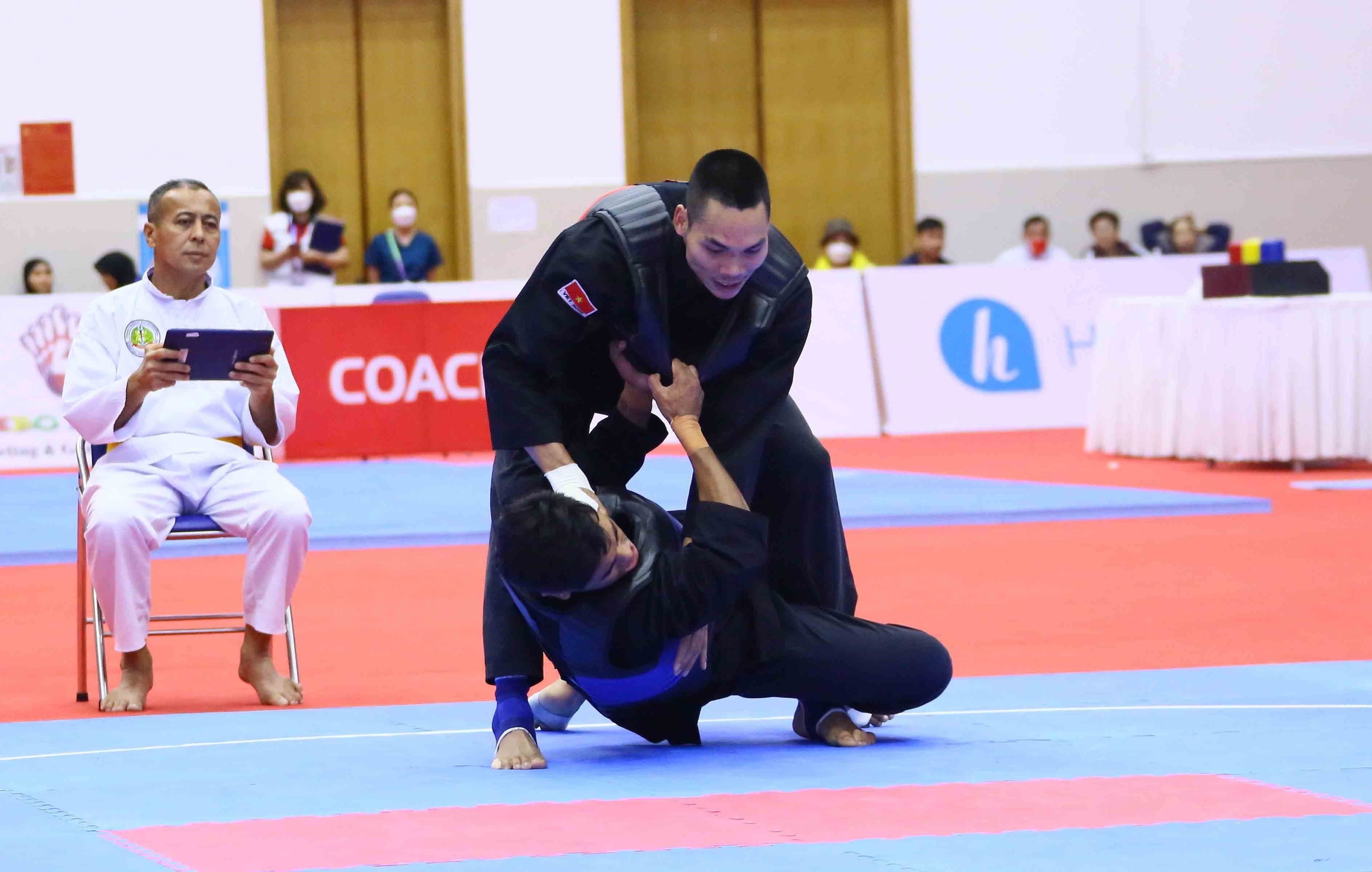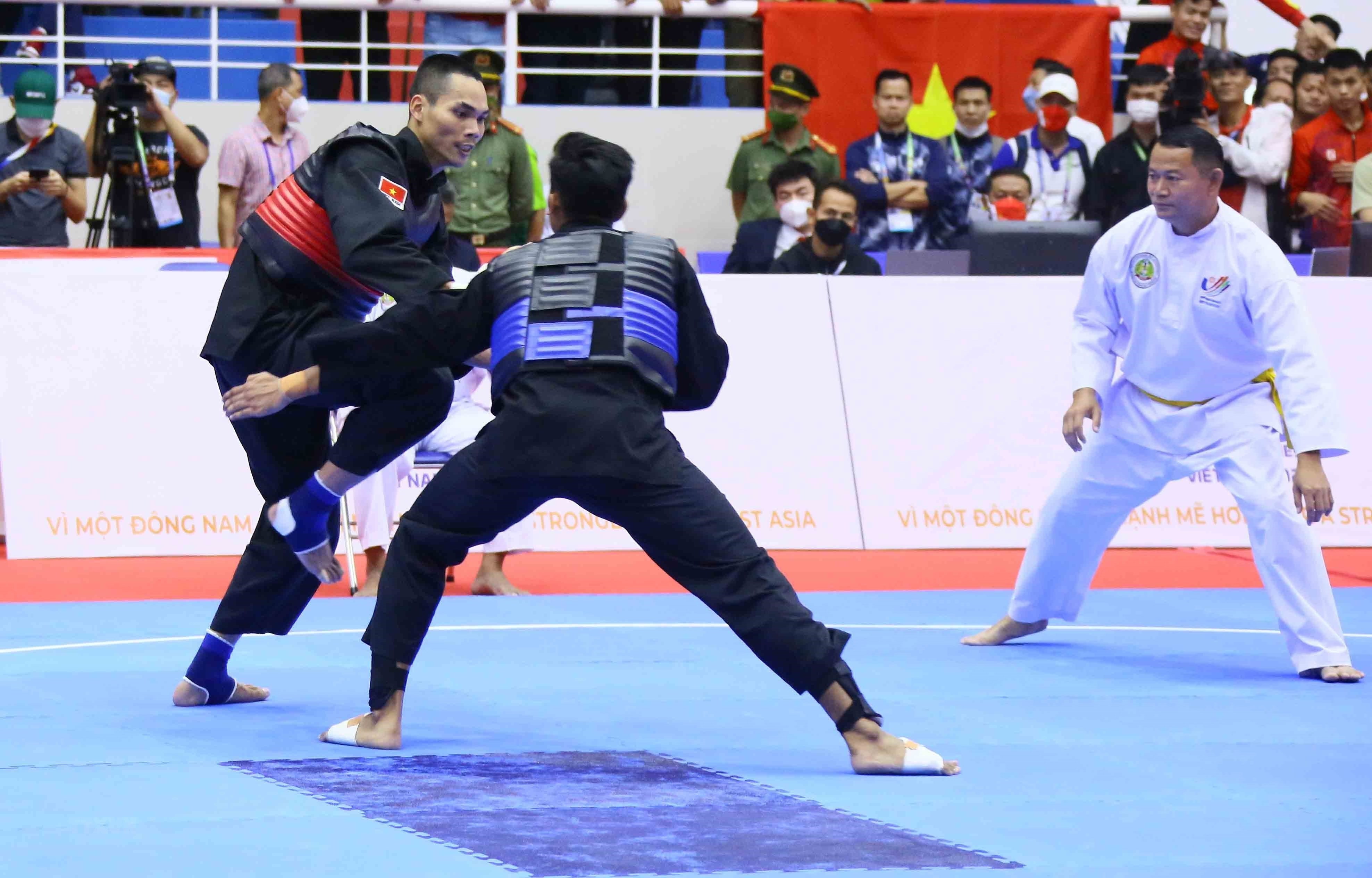 Trần Đình Nam thắng cách biệt 42-14 trước Abdun Raazaq Bin Abdul Rashid (Singapore) ở chung kết hạng cân 70kg-75kg môn Pencak Silat, để giành huy chương Vàng SEA Games 31.